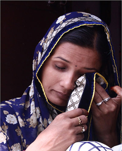 Smt. Mamta Kunwar (30 years old): Her husband was a driver and addicted to different types of drugs. He used to beat her after getting drunk. Harassed by such behavior, Mamata, with her two very young daughters and a son, went away to her parents. How long could she live there also as only one of her sisters could understand her pain. After a few years when she returned, she found out that her husband was in a bedridden with T.B. and there was not a grain to eat in the house then two days later (about 4 years ago) he died. Now Mamta, widowed with her three young children landed into a very difficult situation. By daily wages and some help from her sister Mamata somehow brought life back on track and continued to send her children to school so that they could become self-reliant. Even the children also understand how much trouble their mother is taking to bring them up. Elder daughter (crying) says that despite the difficulties her mother is managing to educate them. She is proud of her mother and is with shoulder to shoulder with her and would take care of her when she grows up. Mamta Kunwar expresses gratitude to the kind donors of Tara Sansthasn and says that it has helped her greatly so that she did not have to beg before others. She wants other people like her also receive similar help.